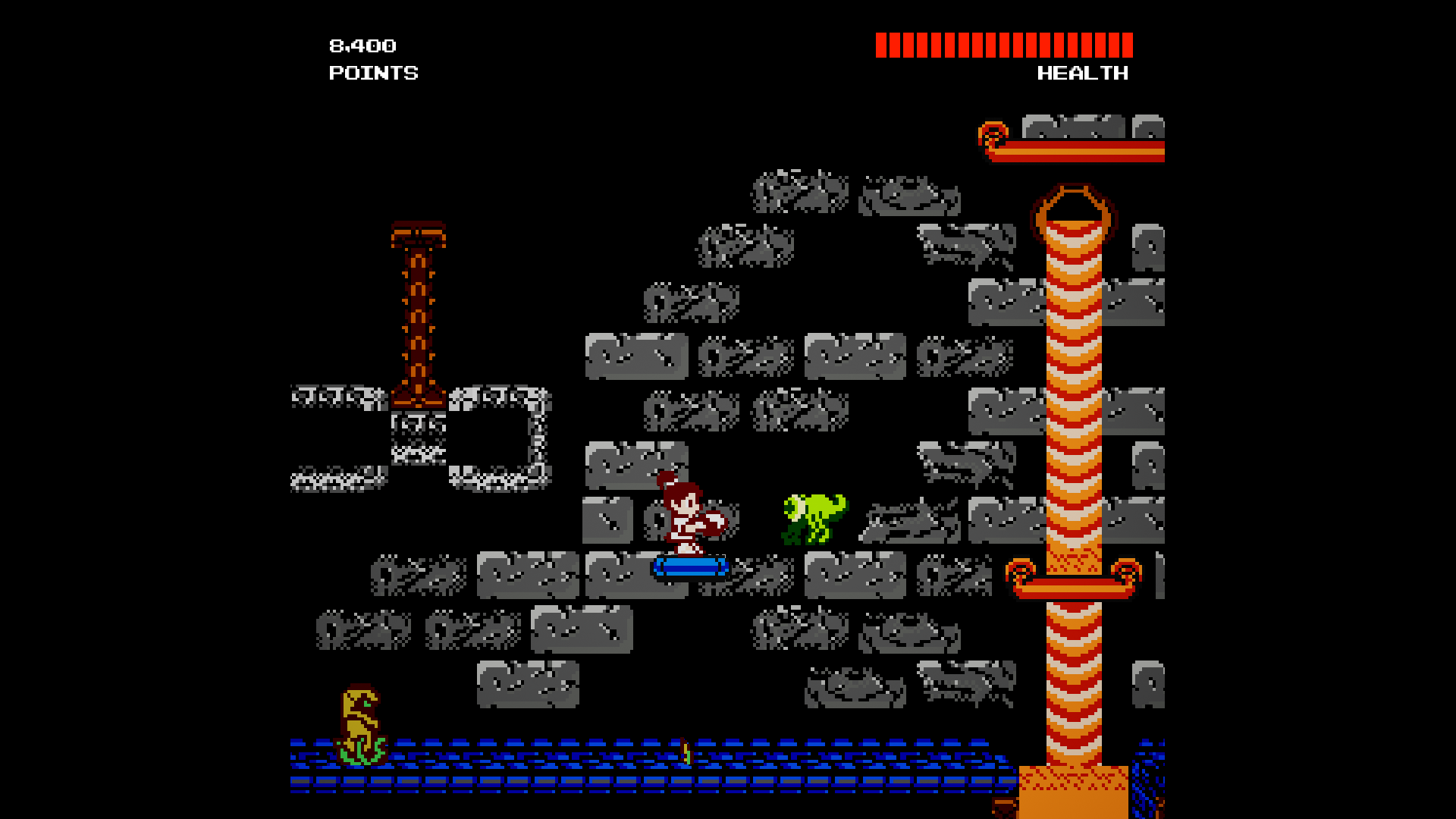 With the aid of a magic device Kirana must fight her way through an underground labyrinth filled with monsters, as she tries to find 3 special gems that will unlock new powers so she may can confront the final boss and rescued her kidnapped father, In this NES style action game.